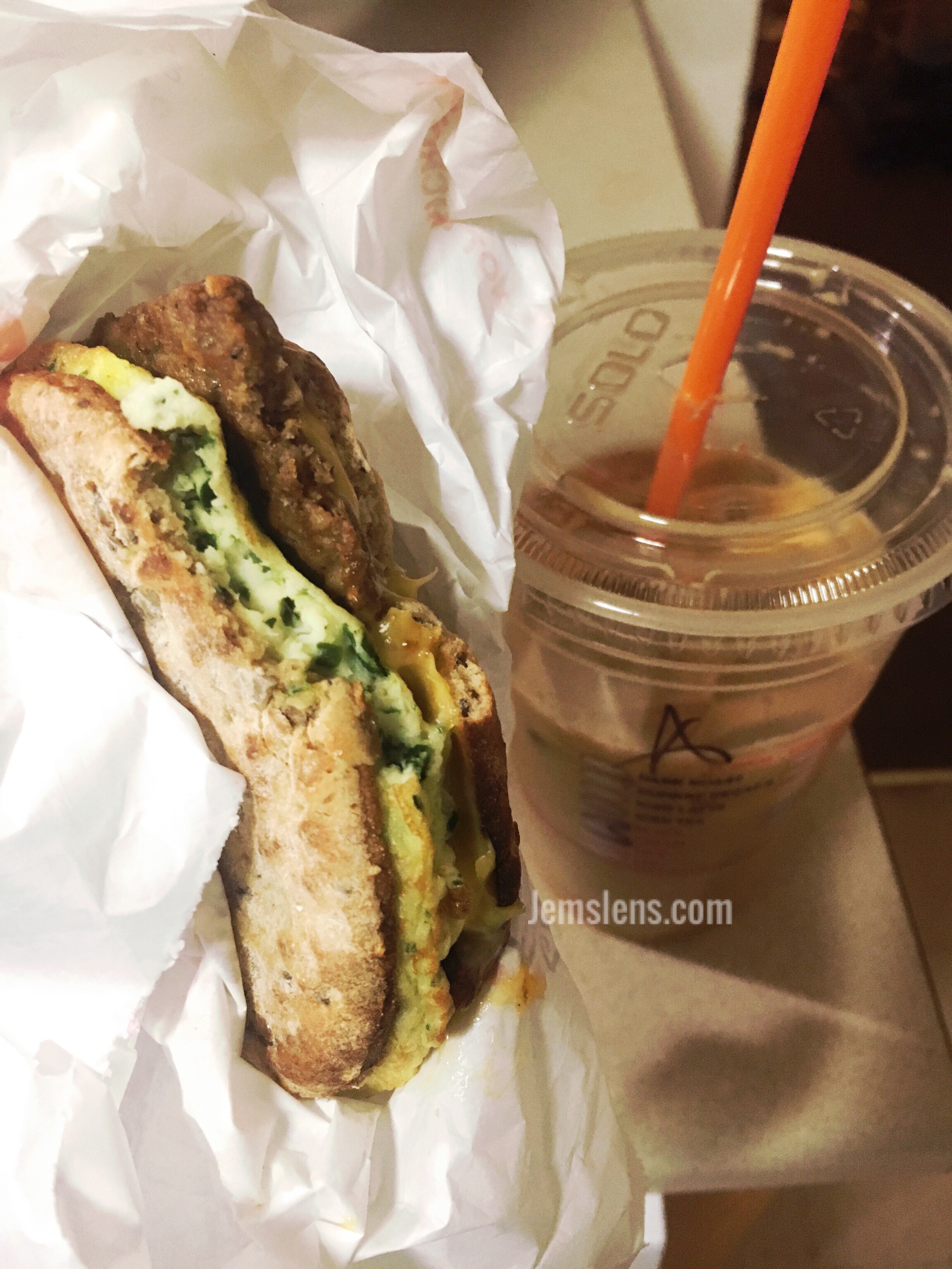 I am glad to see some changes on the menu. Today I decided to give the Power Breakfast Sandwich a go. I mean it’s still an egg sandwich, but the combination of spinach, peppers, onion, and turkey sausage gives it a little personality. If you have already tried it out, tell me what you think.