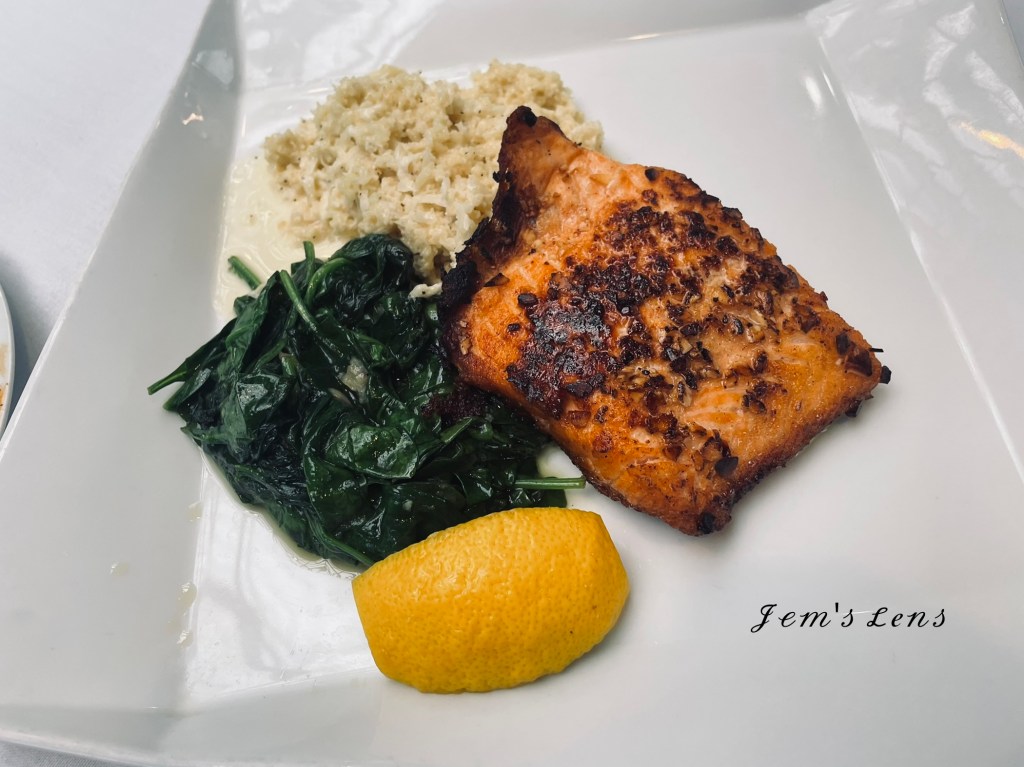 My mom ordered the Norwegian Salmon fillet which was prepared with a brown sugar and sea salt glaze, sauteed spinach, and cauliflower risotto.