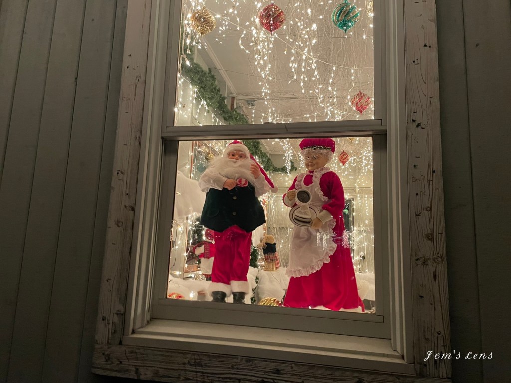 Of course, after my usual photoshoot session, I wanted to check out this house. Upon further inspection, I saw that it was a display house and was fully decorated with Christmas goodness. They also had Mr. & Mrs. Claus dancing for us at the window.