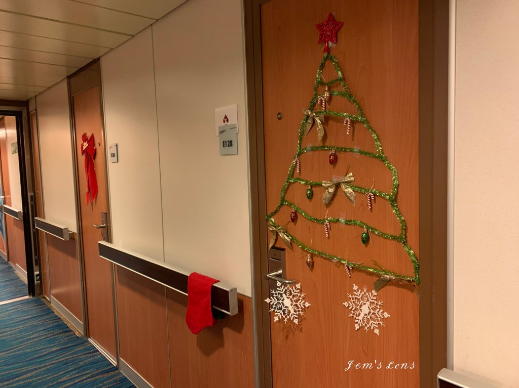 It also didn’t cross my mind to pack any costumes or holiday decorations. It wasn’t until getting onboard the ship and seeing all the decorations that I had that thought. I mean it was one thing to see the lobby and main area of the ship decorated but seeing the personalized decorations on other passengers’ doors definitely made me feel a way. It was beautiful to see though.